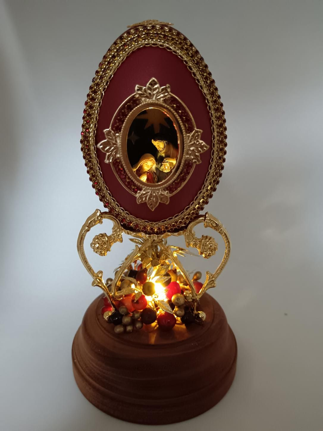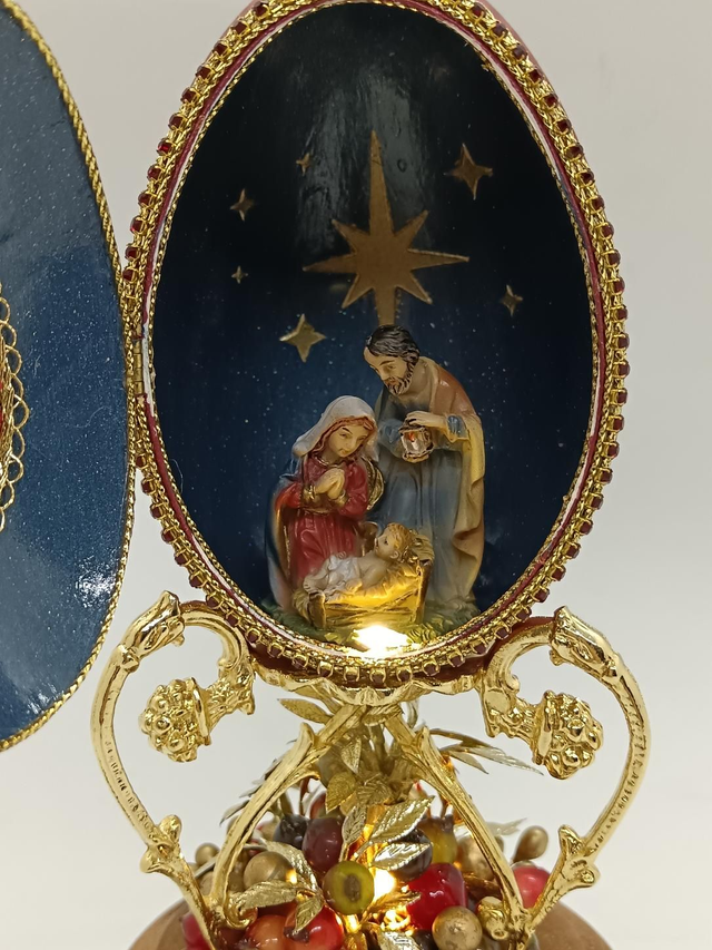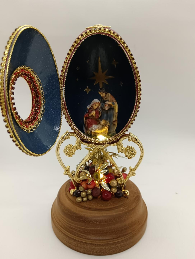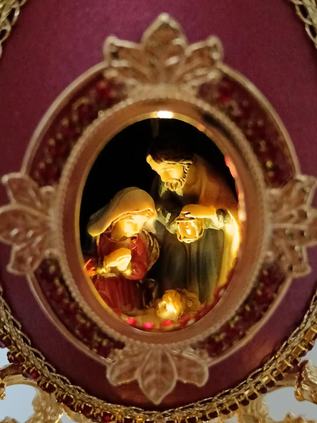 This Goose egg light up nativity scene with a beautiful hand painted nativity inside.