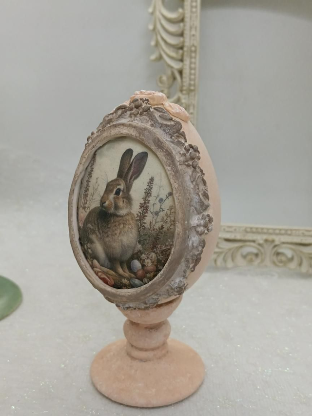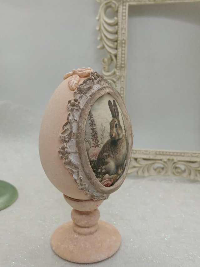 Peach Goose egg with a rabbit print