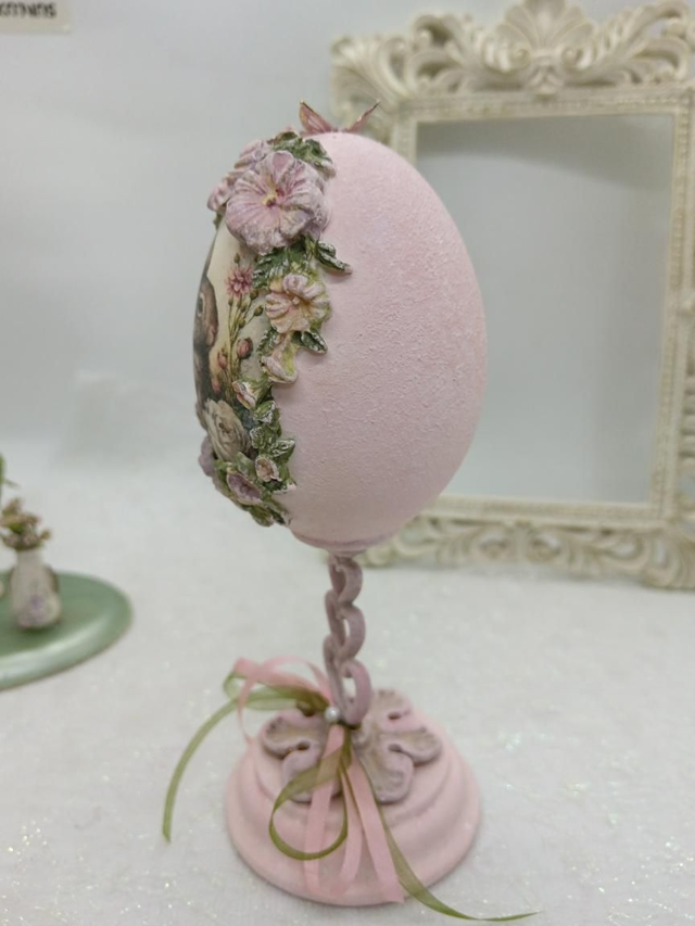 Goose egg with hand made and painted flowers.