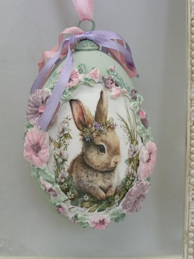 Sweet bunny with flowers on her head hanging Goose egg