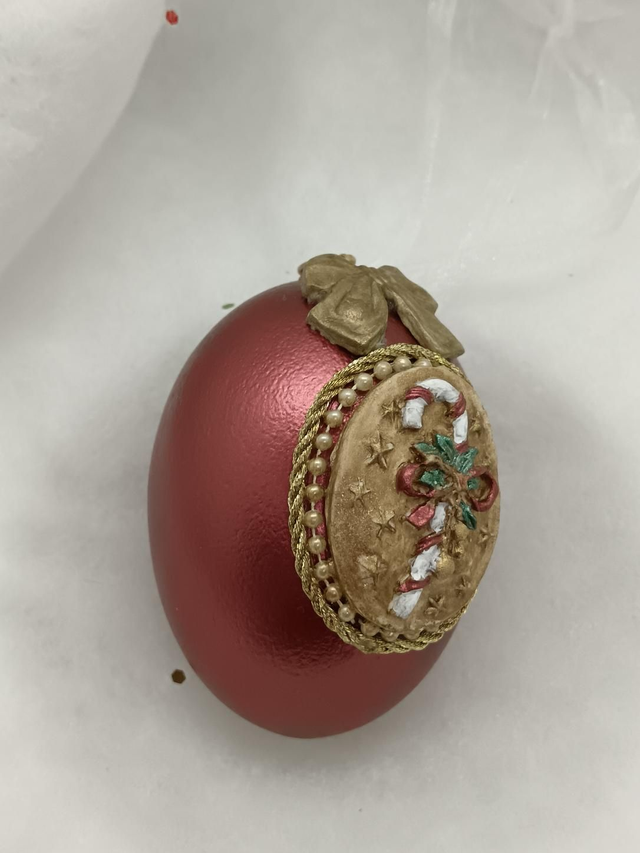Candy cane on a Burgandy Duck egg