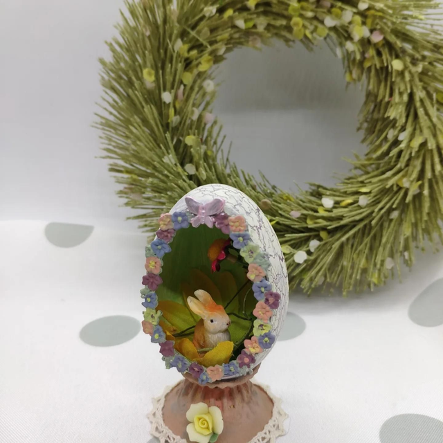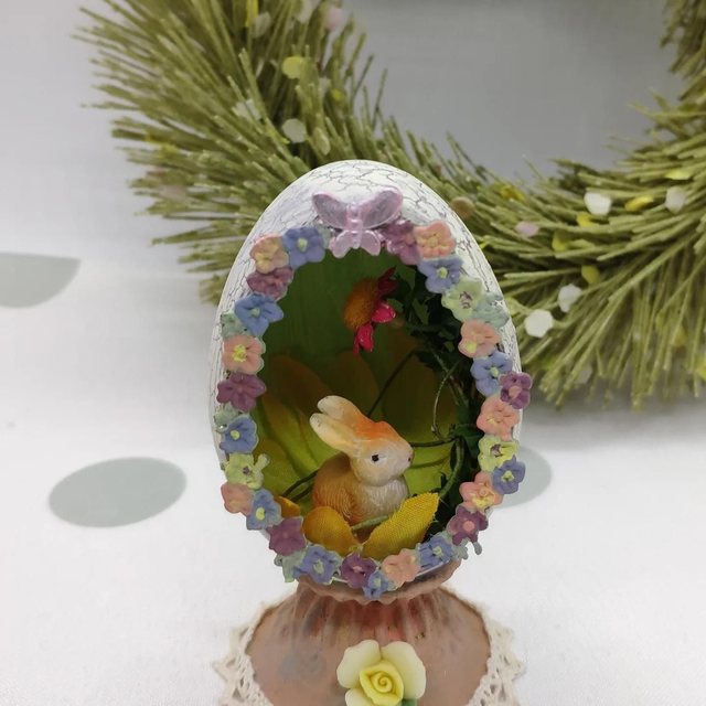 Tiny bunny in a Duck egg with metal stand
