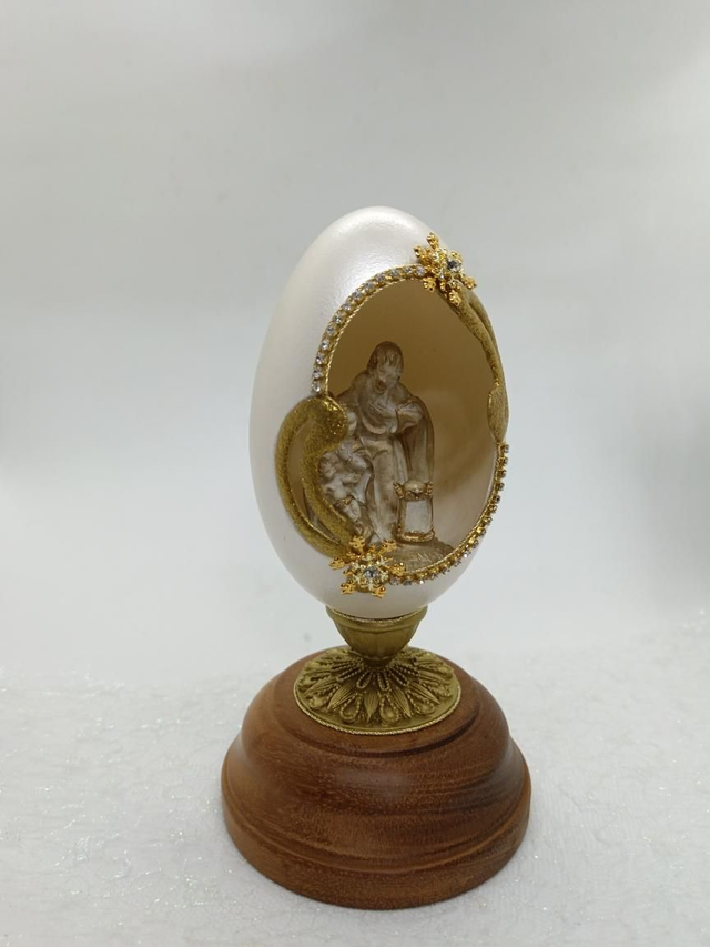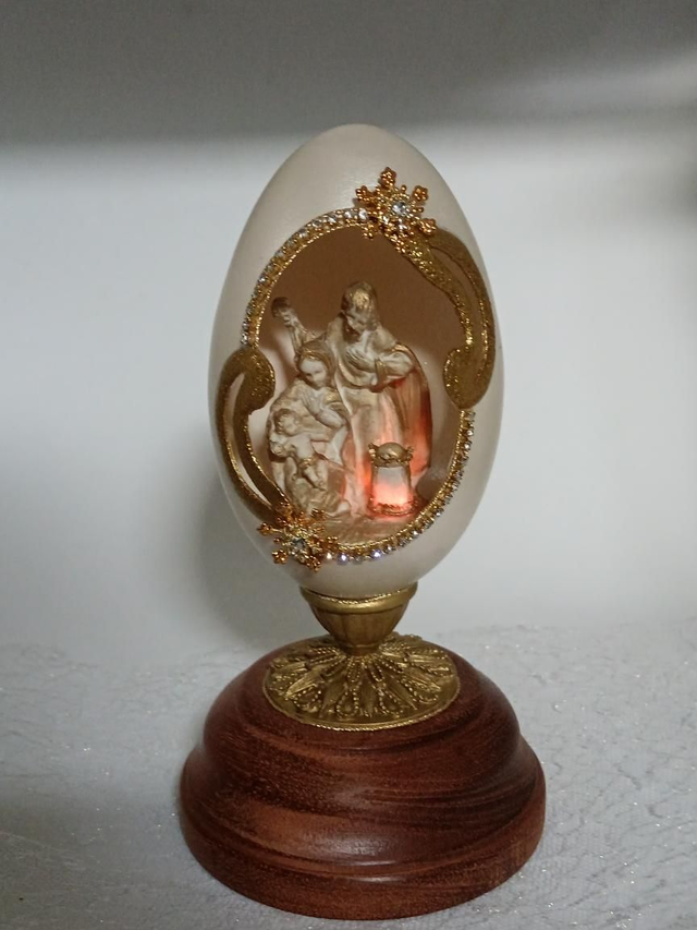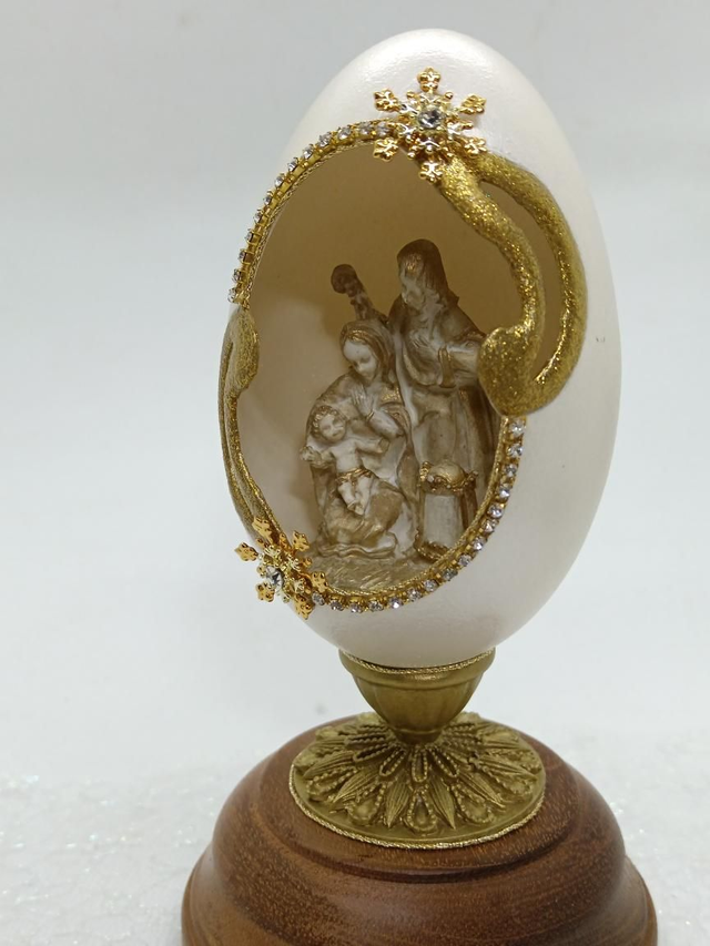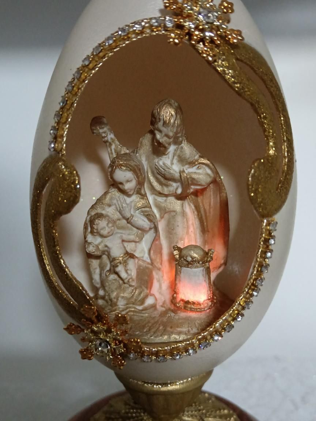White and Gold Goose egg with light up Nativity